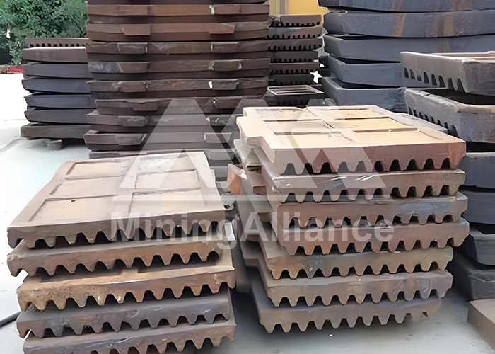 The jaw plate is installed on both the movable and fixed jaws of the crusher and performs the primary crushing task. Working under extreme impact and friction, wear resistance and strength are the most critical factors. Our jaw plates are made from high manganese steel, ultra-high manganese steel, or composite materials through vacuum casting and precision heat treatment. This process ensures excellent toughness and hardness to resist both impact and abrasion.